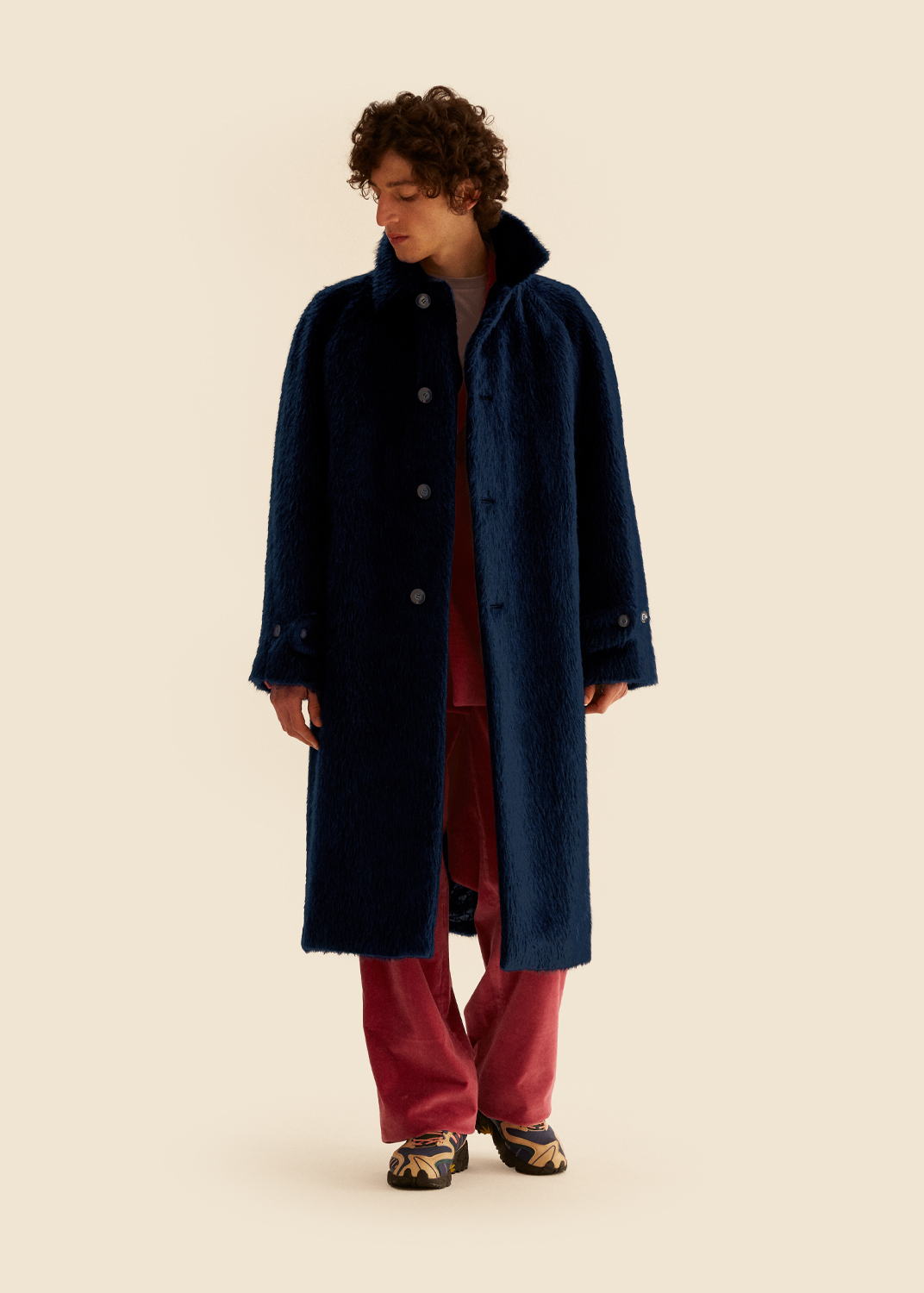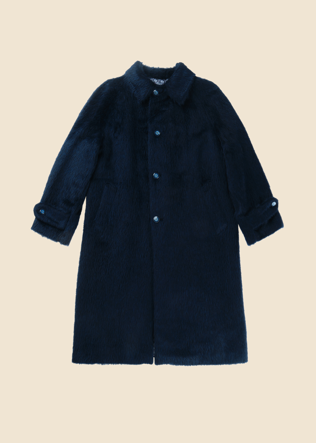 Suri Alpaca long fur coat, unlined, Raglan sleeve. Made by tailoring techniques.
