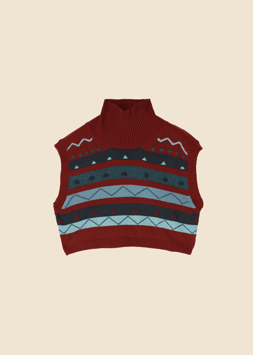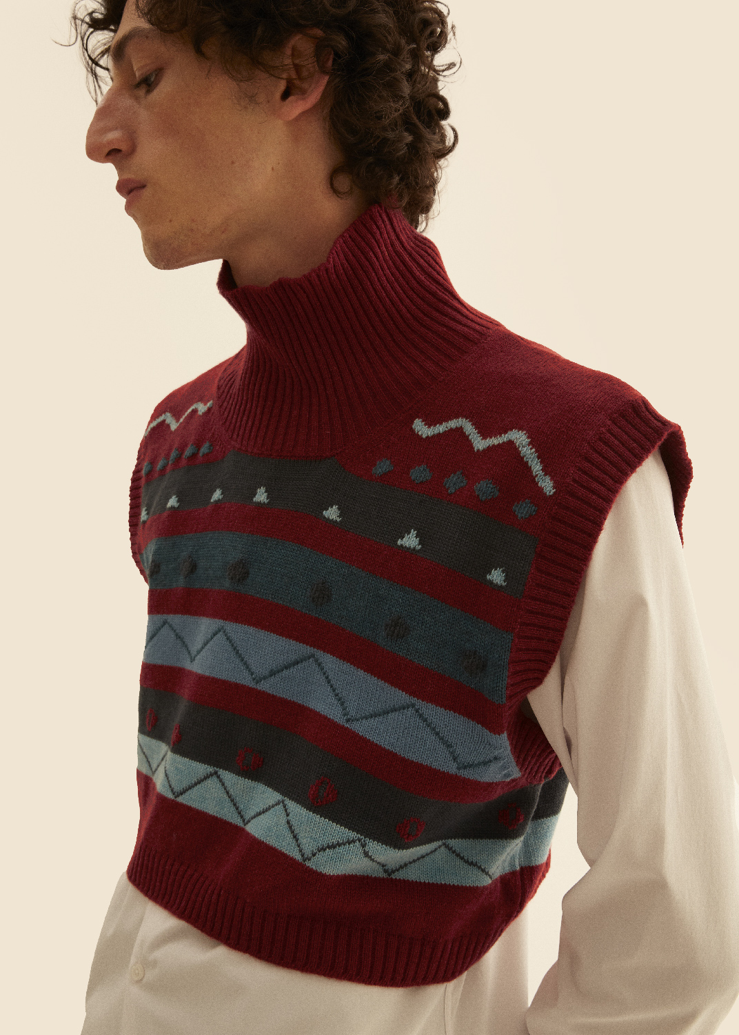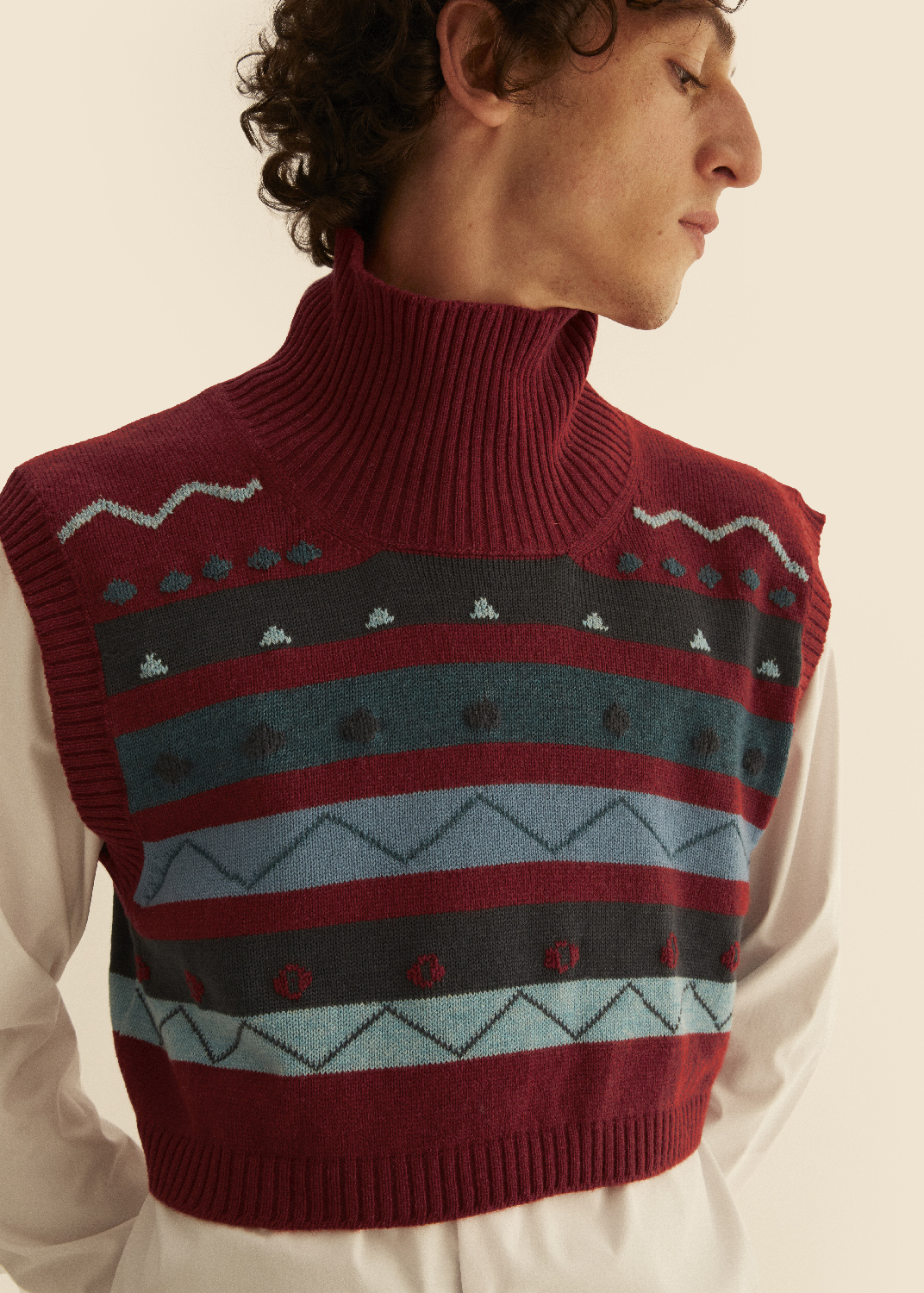 Wool and cashmere turtleneck sleeveless top, hand embroidered.